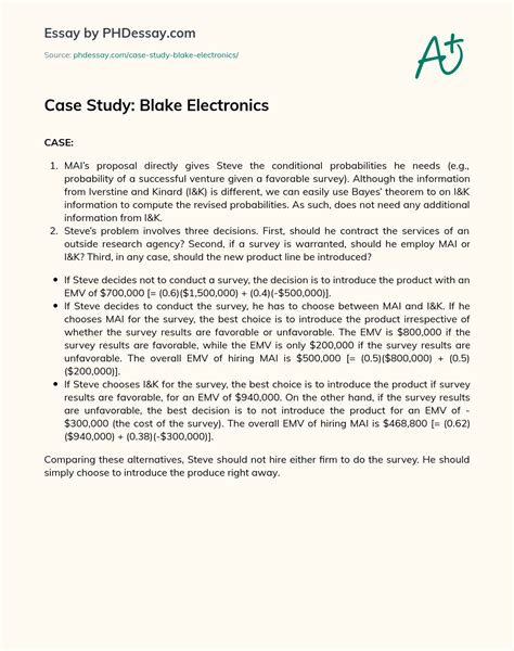 Online PDF BLAKE ELECTRONICS CASE STUDY SOLUTION Epub